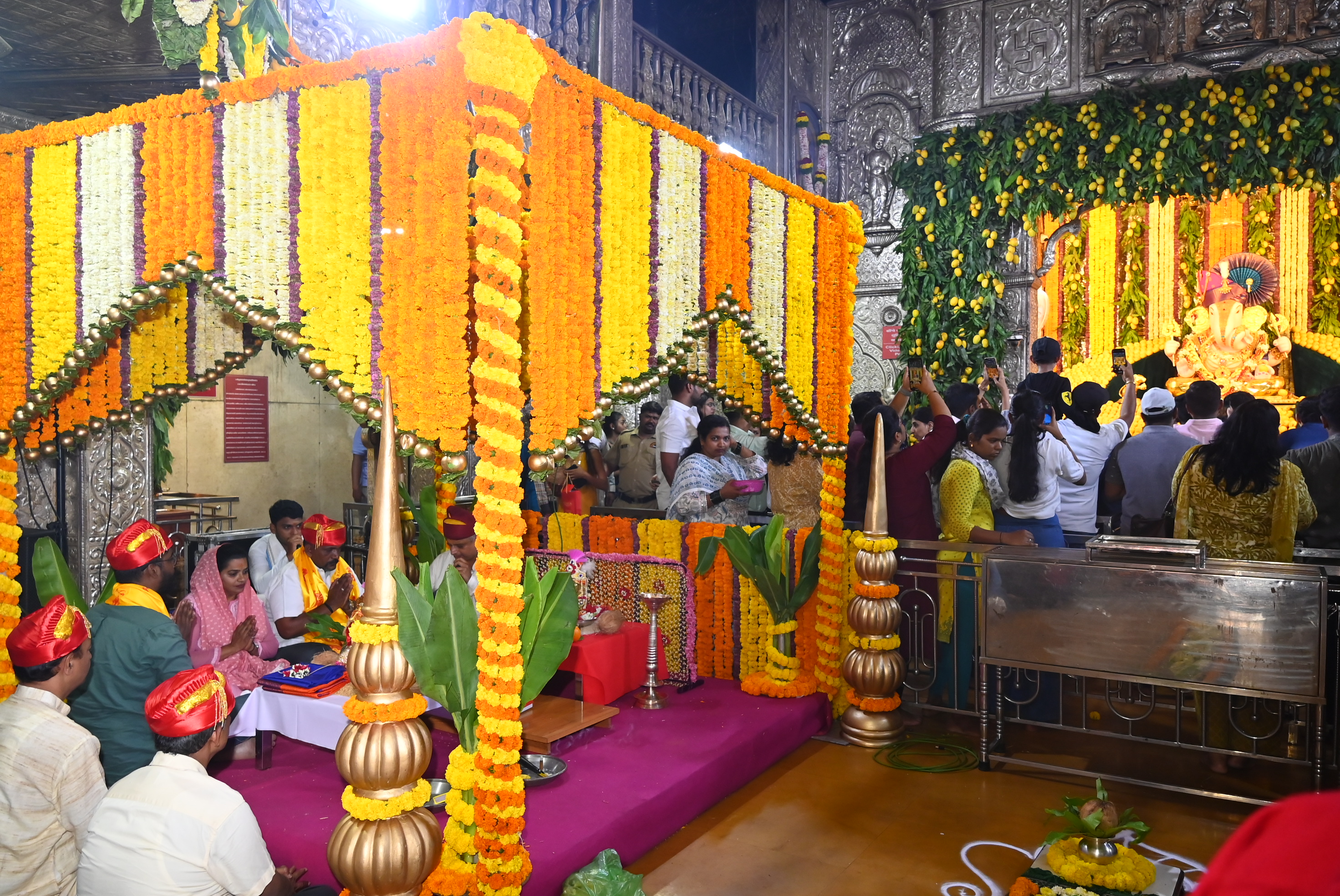 Shardesh Mangalam is a special event celebrated on Akshaya Tritiya to celebrate the holy union of marriage between Lord Ganesha and Devi Sharda. All the wedding festivities are organized and then the idols of Lord Ganesha and Devi Sharda are married with all the Hindu rituals. Devotees can also be part of this and witness all the functions at the temple.